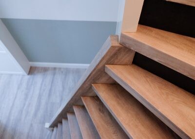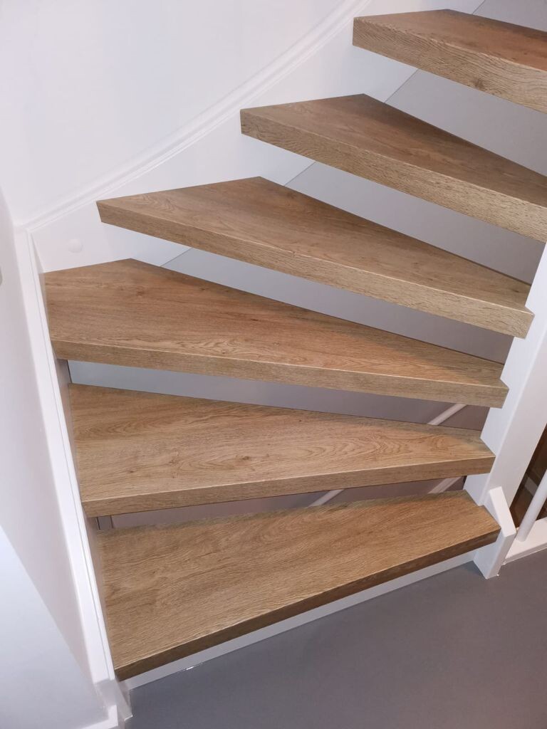 Hier enkele impressies van gerealiseerde projecten op basis van Forbo Allura pvc trapbekleding Honey Elegant oak